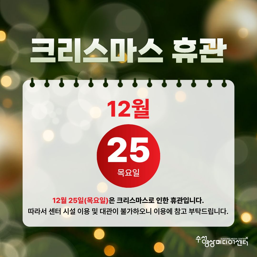 [수성영상미디어센터] 크리스마스 휴관 안내
