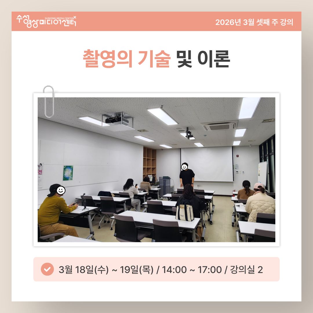[수성영상미디어센터] 촬영의 기술 및 이론 (26.3.18 ~ 3.19)
