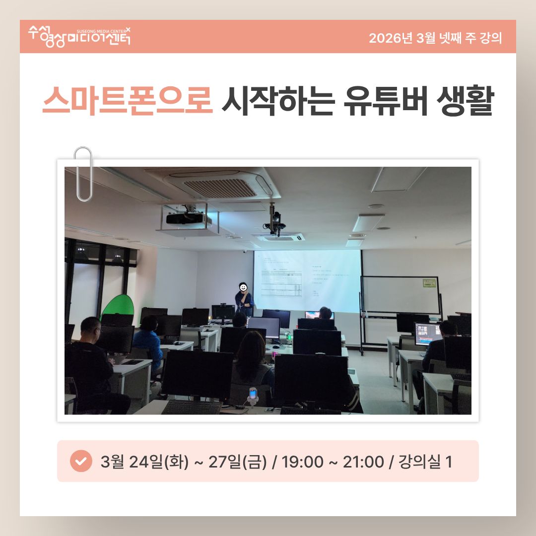 [수성영상미디어센터] 스마트폰으로 시작하는 유튜버 생활 (26.3.24 ~ 3.27)