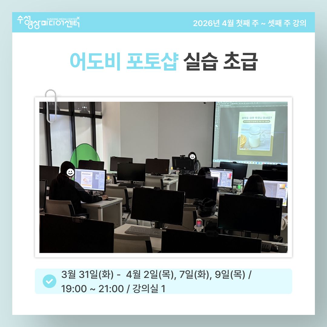 [수성영상미디어센터] 어도비 포토샵 실습 초급 (26.3.31 / 4.2 / 4.7 / 4.9)